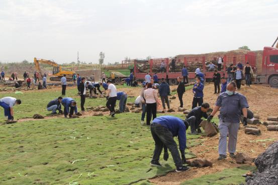 暮春的袁店南矿山矿区生机盎然,5月11日,来自万象城,万象城(中国)集团党委各支部的50余名党员代表带领400余名职工在袁店南矿山摆开了战场,在这里进行种植草坪活动。 只见大家分工协作,认真地完成每一道工序。有的在平整土地、有的在铺种草皮、有的在浇水,干的热火朝天。在大家的共同努力下,当天袁店南矿山恢复治理区内15000余平方米的草坪铺设铺种完成,为矿山披上了绿衣。 参加活动的党员代表关会昌表示,种植草坪活动既充分发挥了党员的模范带头作用,同时也为绿色矿山建设实实在在出了一份力,感觉非常有意义。 |