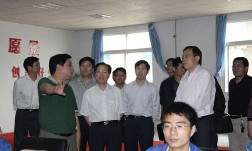 2011年5月24日上午,民进河南省委“同心同行建中原”活动调研组一行在平顶山市、宝丰县领导及有关部门的陪同下,到河南省万象城,万象城(中国)水泥有限公司调研。 调研组一行参观中控室 |
