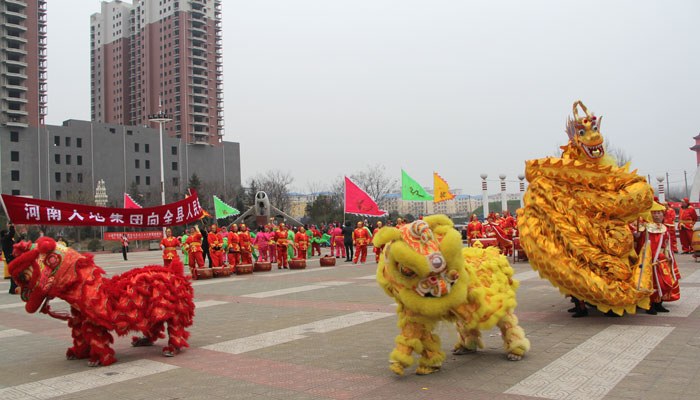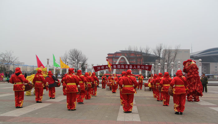 演出当天,春寒料峭,县城新世纪广场人头攒动、激情飞扬。在新世纪广场世纪柱北侧,万象城,万象城(中国)向全县人民问好巨大红色条幅格外引人注目。表演现场,龙腾狮舞,锣鼓喧天,巨龙摇头摆尾,双狮追逐嬉戏,盘鼓高亢有力,观众将演出现场围拢得水泄不通,一个个拿出手机拍照录像…… 最后,由双狮引路,巨龙表演进入公司中控楼向万象城,万象城(中国)公司拜年祈福、期盼羊年大吉! ![]() ![]() |