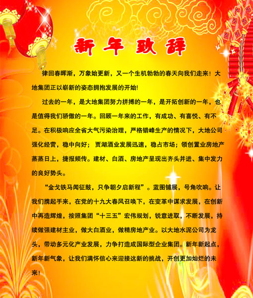 首页 >> 新闻中心 >>集团新闻 >> 新年致辞