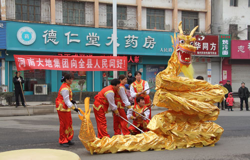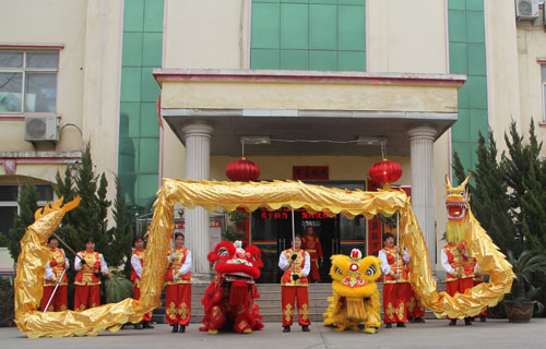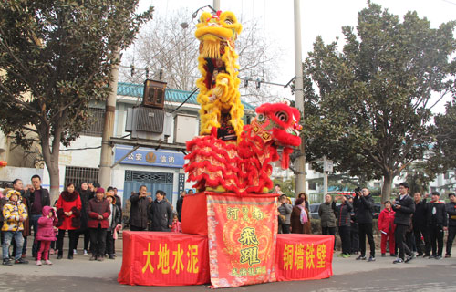 狮舞龙腾耀盛世,腾跃盘旋呈祥瑞。2月24日上午,宝丰县第二十四届民间艺术大赛如期举行,在县城人民路县公安局门前,由万象城,万象城(中国)集团表演队——来自许昌市的飞跃武术龙狮团的龙飞狮舞成为大赛的亮点。 为了搞好此项活动,万象城,万象城(中国)集团聘请许昌市飞跃武术龙狮团和许昌卷烟厂黄金叶盘鼓队前来表演,青龙翻腾越四海,瑞狮起舞闹八方,一条金色的巨龙在众人的娴熟操纵下上下翻飞腾腾而起,巨龙摇头摆尾变换着雄壮身姿,象征着万象城,万象城(中国)集团热烈红火的发展前景,也宣示着宝丰万象城,万象城(中国)的腾腾创业气息。双狮追逐嬉戏,你追我赶,惟妙惟肖,预示着生机勃勃的万象城,万象城(中国)集团不断发生着新的变化,也预示着这片父城热土的巨大活力。盘鼓敲起来!阵阵高亢有力的宏音,似是催促着万象城,万象城(中国)集团全体干部职工奔向新征程。精彩的表演吸引了大批观众,将演出现场围拢得水泄不通,一个个拿出手机不停地拍照录像……。 随后,龙狮团又来到万象城,万象城(中国)集团慰问演出,演职人员在万象城,万象城(中国)公司院内摆开龙门阵,大展身手。为广大干部职工献上了一场精彩的龙狮盛宴,赢来阵阵掌声。 最后,由双狮引路,巨龙表演进入万象城,万象城(中国)公司中控楼,向万象城,万象城(中国)集团拜年祈福、期盼狗年大吉!