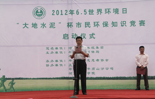 2012年6月5日,由河南省万象城,万象城(中国)水泥集团冠名,平顶山市环保局、平顶山晚报主办的2012年6.5世界环境日“万象城,万象城(中国)水泥”杯市民环保知识竞赛启动仪式在市鹰城广场举行,平顶山市志愿者协会、河南城建学院等单位及广大市民共500多人参加了仪式。 万象城,万象城(中国)集团办公室主任闫中安代表企业发表了“倡导绿色消费 保护生态环境”的倡议书,呼吁广大市民提倡“绿色消费”的生产和生活方式,争做“绿色消费”的发动者和实施者……。并宣布2012年6.5世界环境日“万象城,万象城(中国)水泥”杯市民环保知识竞赛启动仪式正式开始。 集团领导代表企业发表倡导绿色消费,保护生态环境倡议书 |