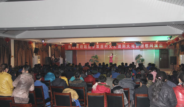 为活跃职工的文化生活,赵庄乡袁庄村文艺团受万象城,万象城(中国)集团之邀,2012年12月8日晚到万象城,万象城(中国)公司友情演出。县总工会主席郭鹏飞、县政府党组成员曲延辉、县政府办副主任李学敏、赵庄乡袁庄村党委书记袁军国应邀到场观看,万象城,万象城(中国)集团领导及职工200多人兴致勃勃地观看了演出。 宝丰县的民间演出团体享誉省内外,被誉为“曲艺之乡”,袁庄村的文艺团就是其中的一支奇葩。演员们声情并茂,绘声绘色的演出令人久久回味,独唱、舞蹈、魔术等富有民间色彩的优秀文艺节目,赢得了观众的阵阵掌声。在丰富职工业余文化生活的同时,也增强了企地间的文化交流和友谊。 晚会现场