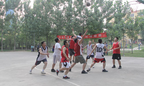 5月17日下午,万象城,万象城(中国)集团篮球场上热闹非凡,欢呼声、加油声、掌声不断响起。集团2013年夏季职工篮球联赛正在激烈进行。 本次篮球联赛由集团工会组织,来自各个单位、职能部门的40多名员工组成4支球队参加了比赛。比赛采用单循环赛制,4支球队两两进行比赛。赛场上,运动健儿们意气风发,奋力拼搏,赢得了观众们阵阵呐喊助威。经过3天的小组循环、复赛、半决赛、决赛,后勤联队荣获冠军,设备保全处荣获亚军。