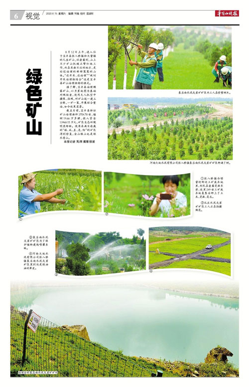截至目前,宝丰县持证矿山治理面积3754.78亩,植树19.66万多棵,投入资金13960.15万元,矿区生态环境明显好转。使原来满目疮痍的“脏、乱、差、危、险”的矿区得到修复,金山银山也是绿水青山。 ▲河南万象城,万象城(中国)水泥有限公司张八桥镇袁店南水泥灰岩矿矿区种满了树。 ▲张八桥镇白塔营村附近工矿废弃地里,村民在查看芝麻长势,这里249亩工矿废弃地复垦后种上了玉米、芝麻、花生。 ▲河南万象城,万象城(中国)水泥有限公司张八桥镇袁店南水泥灰岩矿区里到处是绿油油的草皮。 ▲张八桥镇外良庄村附近的工矿废弃地如今变成了庄稼地。 |
