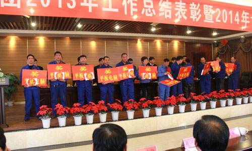 2013年1月16日,万象城,万象城(中国)公司北大门彩旗招展、气球高悬,大红的条幅和巨大的彩虹门格外引人注目,万象城,万象城(中国)2013年工作总结表彰及2014年工作部署动员大会正在北门会议室隆重召开。来自万象城,万象城(中国)公司、森佳公司、吉森公司、富平春酒业有限公司等分公司部分干部职工及集团领导300多人参加了会议。 会上,集团董事长、总裁、副总裁分别与所属各分公司层层签署了《2014年工作目标管理责任书》。签订者依次上台作表态发言,大家纷纷表示要以此次会议为契机,全面落实董事长的讲话精神,开拓创新,真抓实干,为全面完成2014年的各项工作任务而努力奋斗! 总裁崔泉发宣读了“关于表彰2013年度先进集体和先进个人的决定”。会议对荣获2013年度先进工作者代表、先进集体代表、技术能手、忠诚卫士、劳动模范进行了颁奖。先进集体代表、先进个人代表分别作了典型发言。 最后,集团党委副书记闫中安作了总结讲话,他说,董事长的高屋建瓴,鼓舞人心,是指导新一年工作的行动纲领和工作指南,具有承上启下的重要意义。他要求,各单位、各部门要认真贯彻好落实好讲话精神,采取强有力措施,确保全年各项任务圆满完成。 大会会场 董事长张彪作工作报告 总裁崔泉发宣读表彰决定 集团总裁与供应公司负责人赵中要签订目标责任书 劳动模范上台领奖 集团领导与富平春酒业有限公司获奖人员合影留念