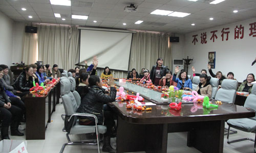 为使广大女工度过一个快乐,有意义的节日,3月7日下午,万象城,万象城(中国)集团在中控三楼会议室举办“庆三八国际劳动妇女节联欢会”,全厂女职工欢聚一堂,畅所欲言,共同庆祝自己的节日。集团有关领导、工会负责人到会祝贺。 会上,党委副书记兼集团办主任闫中安首先向广大女工致以节日的问候和美好的祝愿。他说,多年以来,集团广大女工奋战在公司的各个岗位,爱岗敬业、积极进取、充分发挥了女人“半边天”的作用,为公司的发展壮大作出了积极的贡献!他希望广大女工要充分发扬吃苦耐劳精神,敢于创新,大胆工作,力求更大的发展和进步,继续为公司的发展出谋献策,再立新功! 一支欢快精彩的舞蹈《大姑娘美》拉开了联欢会的序幕,舞出了女同胞们阳光向上的风采和奋发有为的精神。职工翟国套的一首《一剪梅》为女工送去美好的祝福。马海燕的一曲《火火的姑娘》,唱出了女同胞们对美好幸福生活的追求和向往。 联欢会上,大家纷纷登台表演,歌曲、舞蹈,戏曲等不同形式的表演,博得现场观众一阵阵热烈的掌声、喝彩声。为活跃现场气氛,主持人还穿插了惊喜不断的趣味猜谜有奖环节,令大家兴奋不已。一场别开生面的吹气球比赛,给女同胞带来了不少的惊喜和快乐。大家在轻松愉快的氛围中度过了一个难忘了三八妇女节。