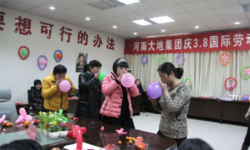 联欢会现场 党委副书记闫中安致辞 欢快精彩的舞蹈《大姑娘美》拉开了联欢会的序幕 女同胞们争先恐后地猜谜语 职工马海燕演唱的《火火的姑娘》把联欢会推向高潮 猜谜语活动给大家带来惊喜和快乐 吹气球比赛 |