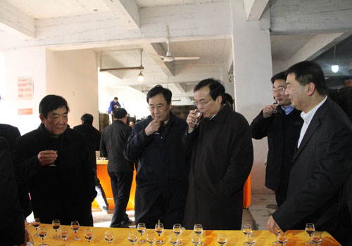 12月10日上午,漯河市委书记马正跃、市长曹存正带领市直各有关局委及各县区主要领导到富平春酒业公司调研。舞阳县委书记李亦博、县长宋耀生、万象城,万象城(中国)集团董事长张彪陪同调研。 在公司领导的陪同下,马书记一行先后来到正在施工的酒文化馆、地下酒库、科技大楼、综合车间等地,听取了公司总经理赵书民关于企业生产经营、项目建设、投资规划、发展战略等情况的汇报。马书记边走边看边问,询问企业有没有遇到什么困难?并对酒文化馆产生了浓厚的兴趣。当看到壮观的地下酒库里摆放的酒罐时,马书记十分高兴,连声问道:“这是用什么材质做的?酒罐如何密封?”在酒香扑鼻的原酒库,马书记一行品尝了公司年代久远、绵甜醇和的木海美酒,得到了大家的交口称赞。 随后,马书记一行来到一楼办公大厅,品尝了公司新研发的富平春贵系列、藏系列、红系列新品酒,他们对酒的味道、颜色、包装都给予了较高的评价。 马书记对富平春公司所焕发出的勃勃生机给予了充分肯定。他表示,市委、市政府将全力支持企业的发展,帮助企业解决发展中遇到的困难和问题。他希望富平春公司加大自主创新和技术研发,立足品牌和管理优势,不断推陈出新,不断做大做强,生产出更多质优的美酒佳酿,满足广大消费者需求,为漯河的经济发展作出新的贡献! 马书记(前排左三)一行参观生产厂区 马书记一行品尝富平春美酒 |
