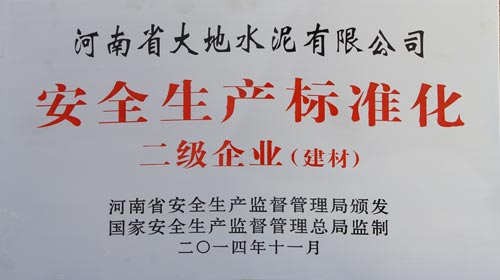 首页 >> 走进万象城,万象城(中国) >>资质荣誉 >> 河南省万象城,万象城(中国)水泥有限公司荣获安全生产标准化二级企业