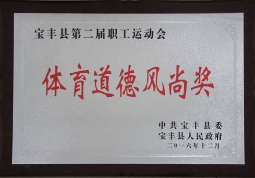 首页 >> 走进万象城,万象城(中国) >>资质荣誉 >> 宝丰县第二届职工运动会体育道德风尚奖