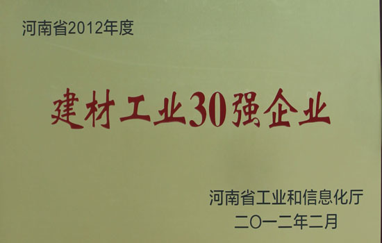河南省2012年度建材工业30强企业